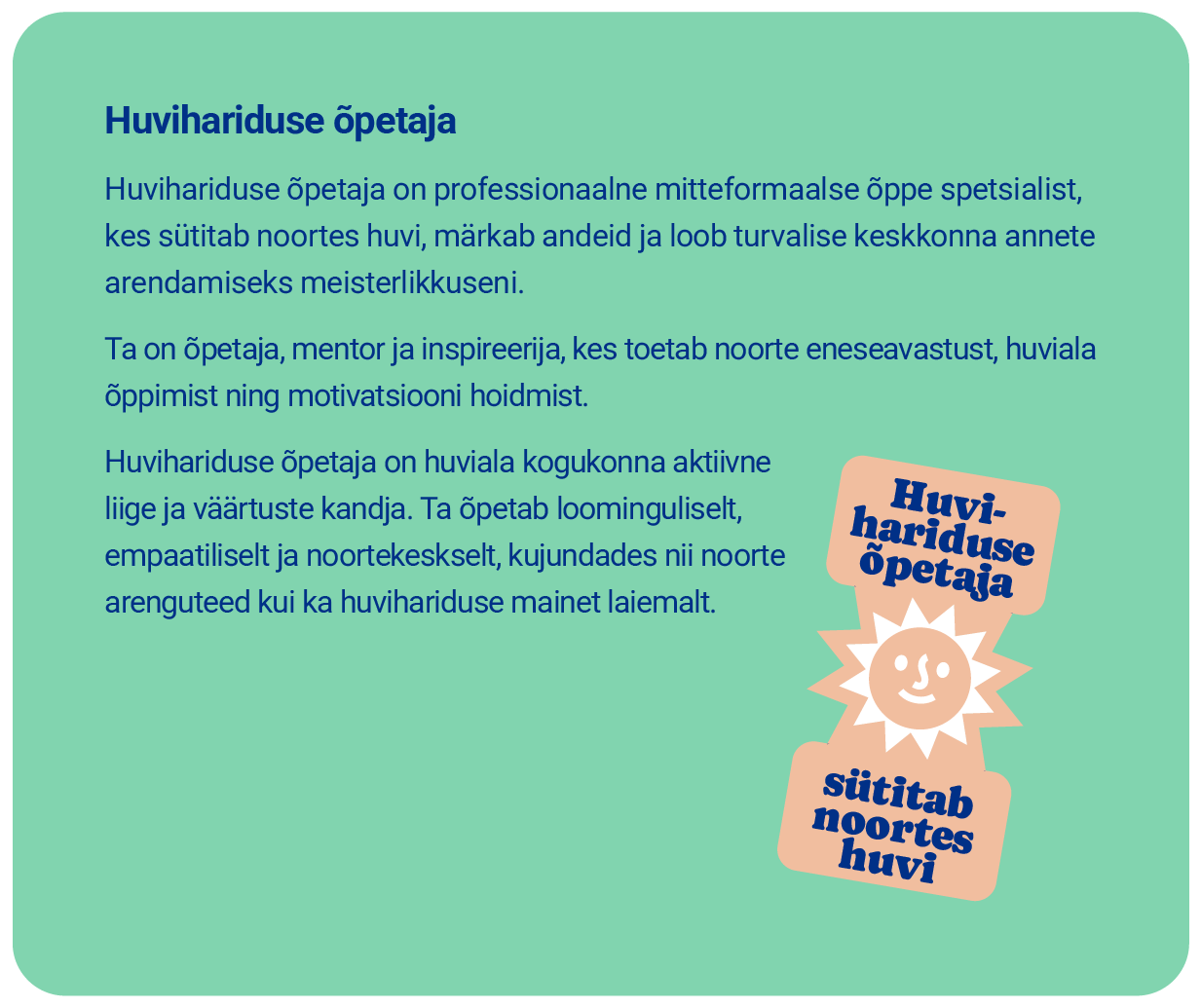 - Tegevuse juhendaja on sobiva ettevalmistusega