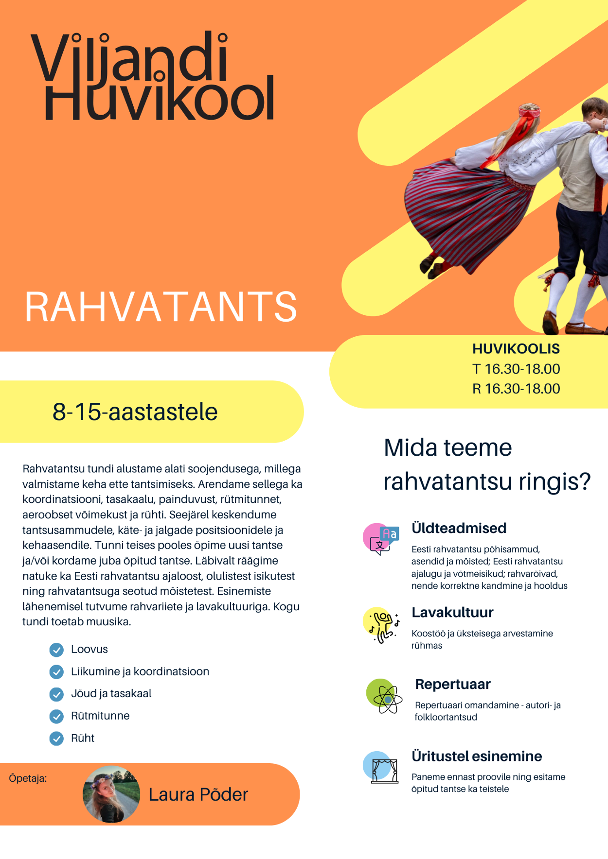 Õppetöö põimub mängudega, laulumängude-tantsudega, seltskonnatantsudega ja laste endi poolt välja nuputatud mängudega.