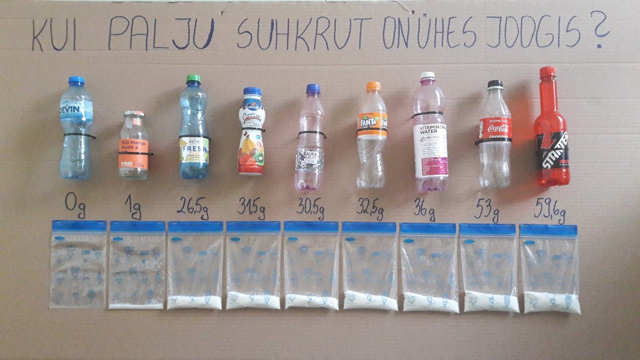 Propageerisime oma pudeli kaasa võtmist ning kui oma pudelit polnud, siis oli võimalus võtta köögiruumist endale kruus. Hoidusime magustatud jookidest ja lisatud suhkrutest. Koridoris olid ja jäävad ka edaspidiseks üles informatiivsed "plakatid" selle kohta, kui mitu grammi suhkrut on meie joodavates jookides ja utsitasime ka juba nädalakene varem õpilasi lugema pakendi tagakülge, sest ka suur E-ainete tabel on kõikidele lugemiseks/vaatamiseks/uurimiseks üleval.